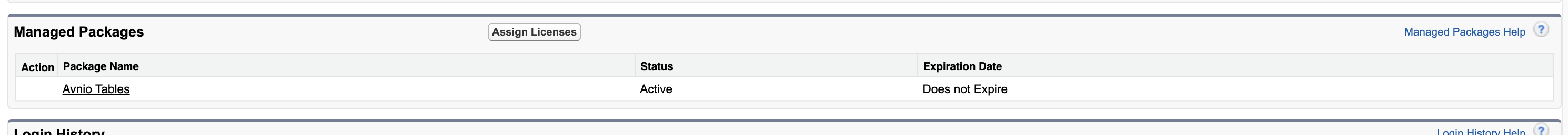 Verify that Avnio Tables license display under Manage Packages