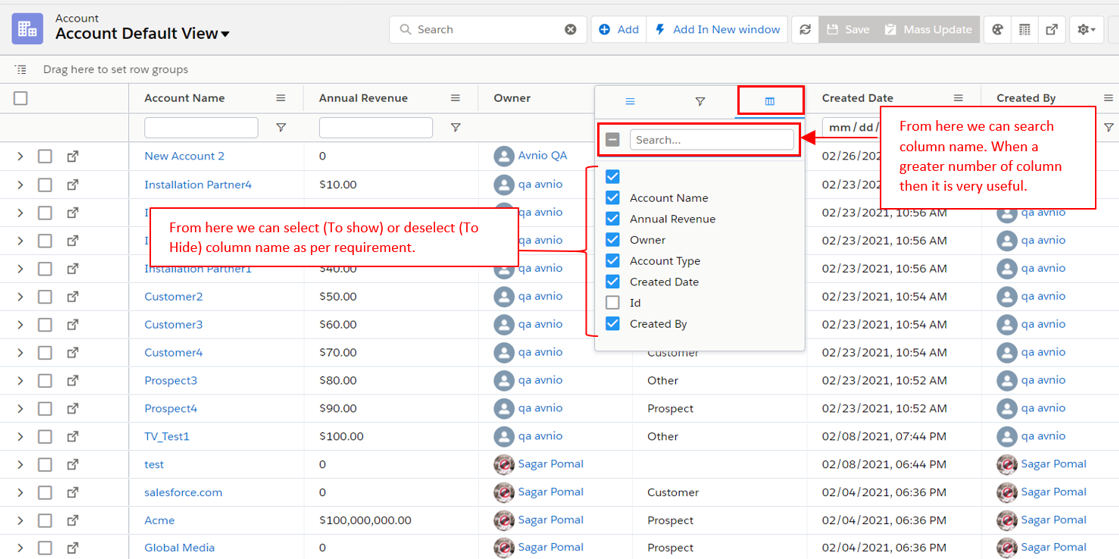 The hide column option is temporarily removed from the table, not actually remove from the background.