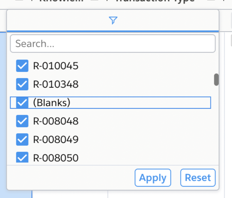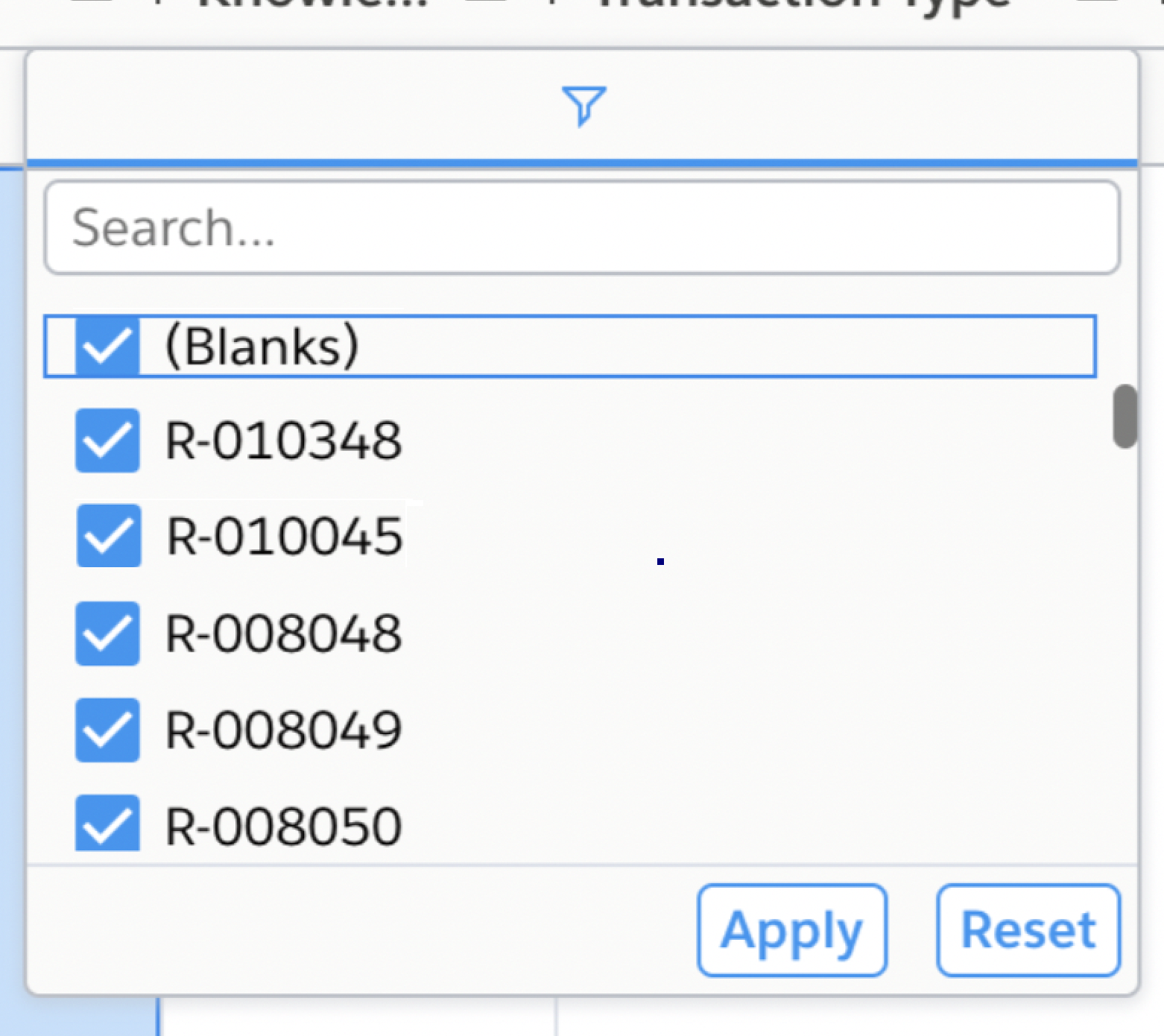 While working with larger data sets (data types: lookup, picklist & multi-picklist), column-level filters sometimes show