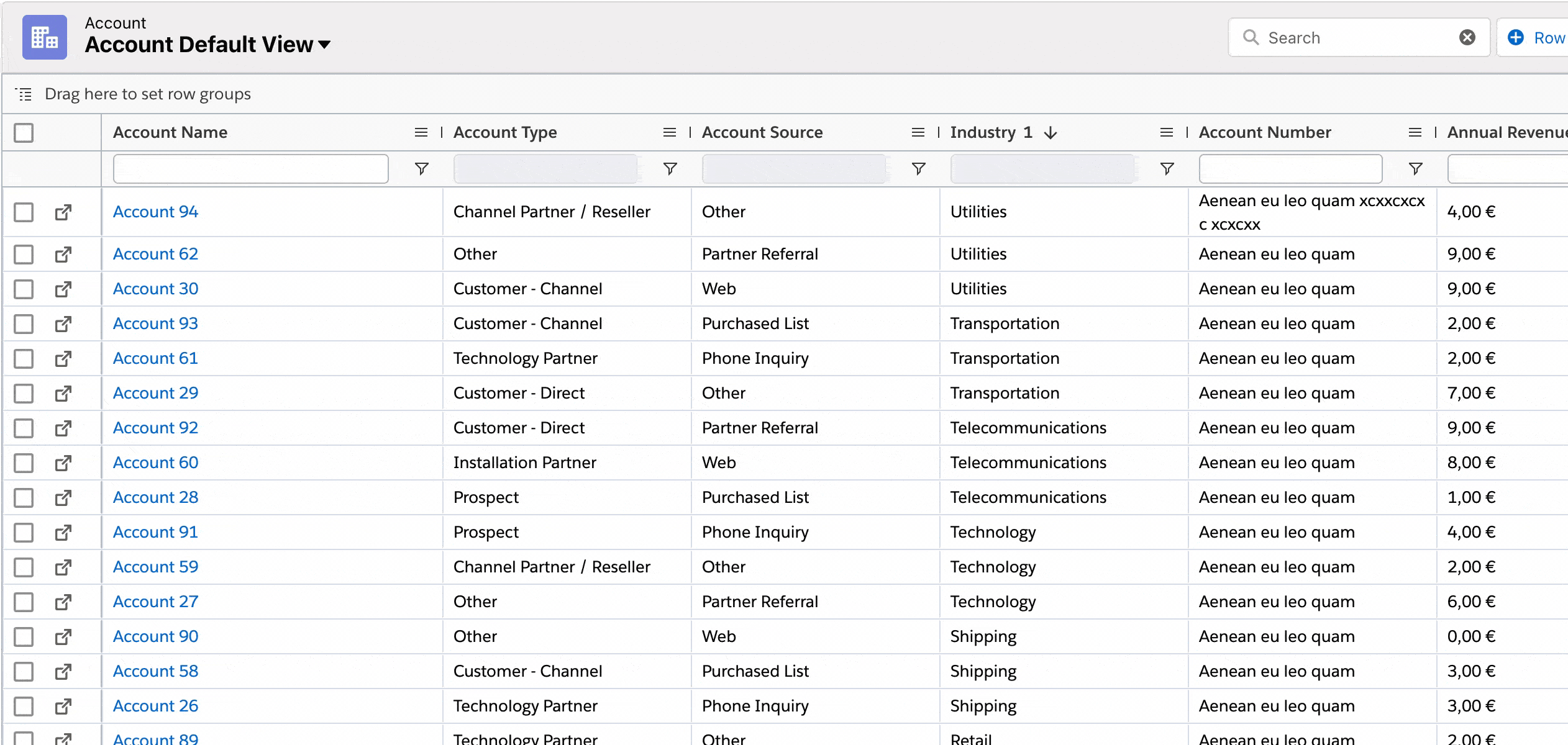 Tables have now the ability to sort grouping. By default, groups will be alphabetically sorted in ascending order. Use [Shift + Click] on column to sort by multiple columns (Account Source, Industry in this case)