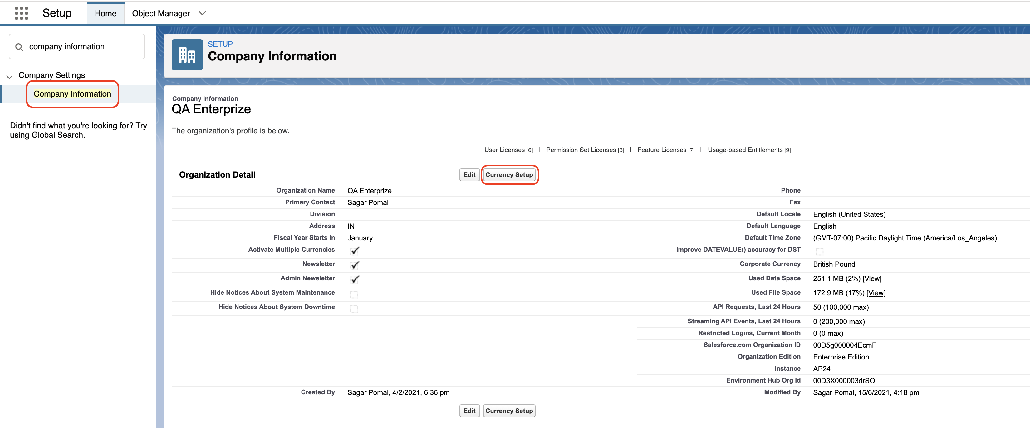 Company Informationand click Company Information.Click Currency Setup.