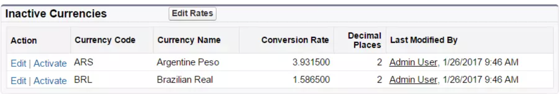 Once you activate multicurrency for your org, you can specify which currencies are supported by activating or deactivating them. No covert intelligence skills required, just a few clicks: