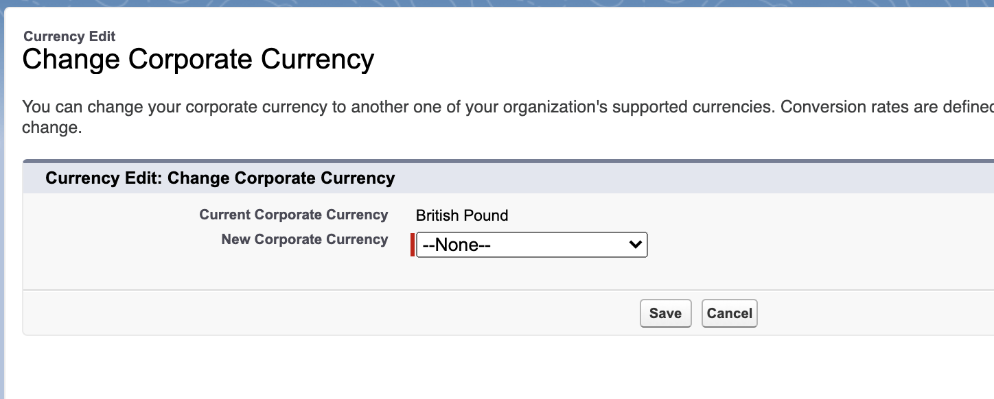 4. Select your new corporate currency from the dropdown.