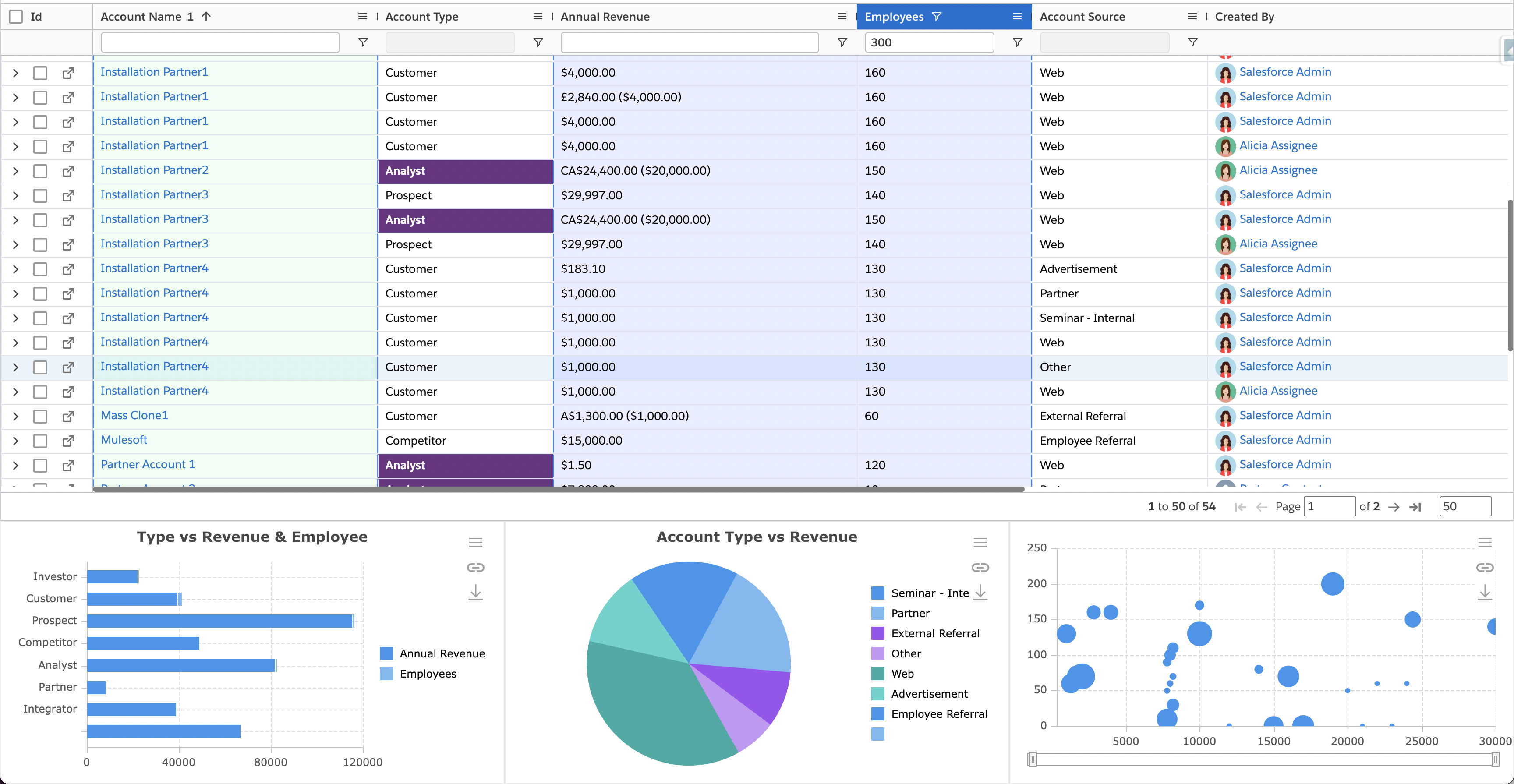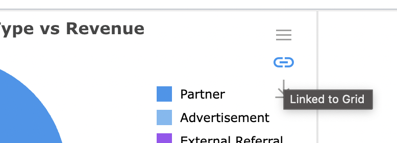 Charts are by default integrated with view changes (sorting, filtering), can be unlinked/linked from link icon in chart