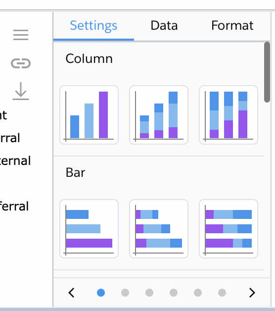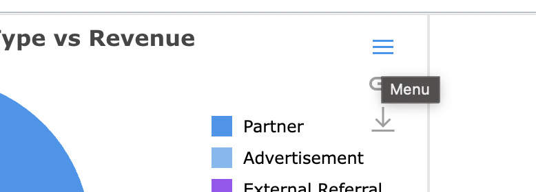 Charts can be added from chart icon and then can be customised further with themes & options from hamburger icon within chart UI